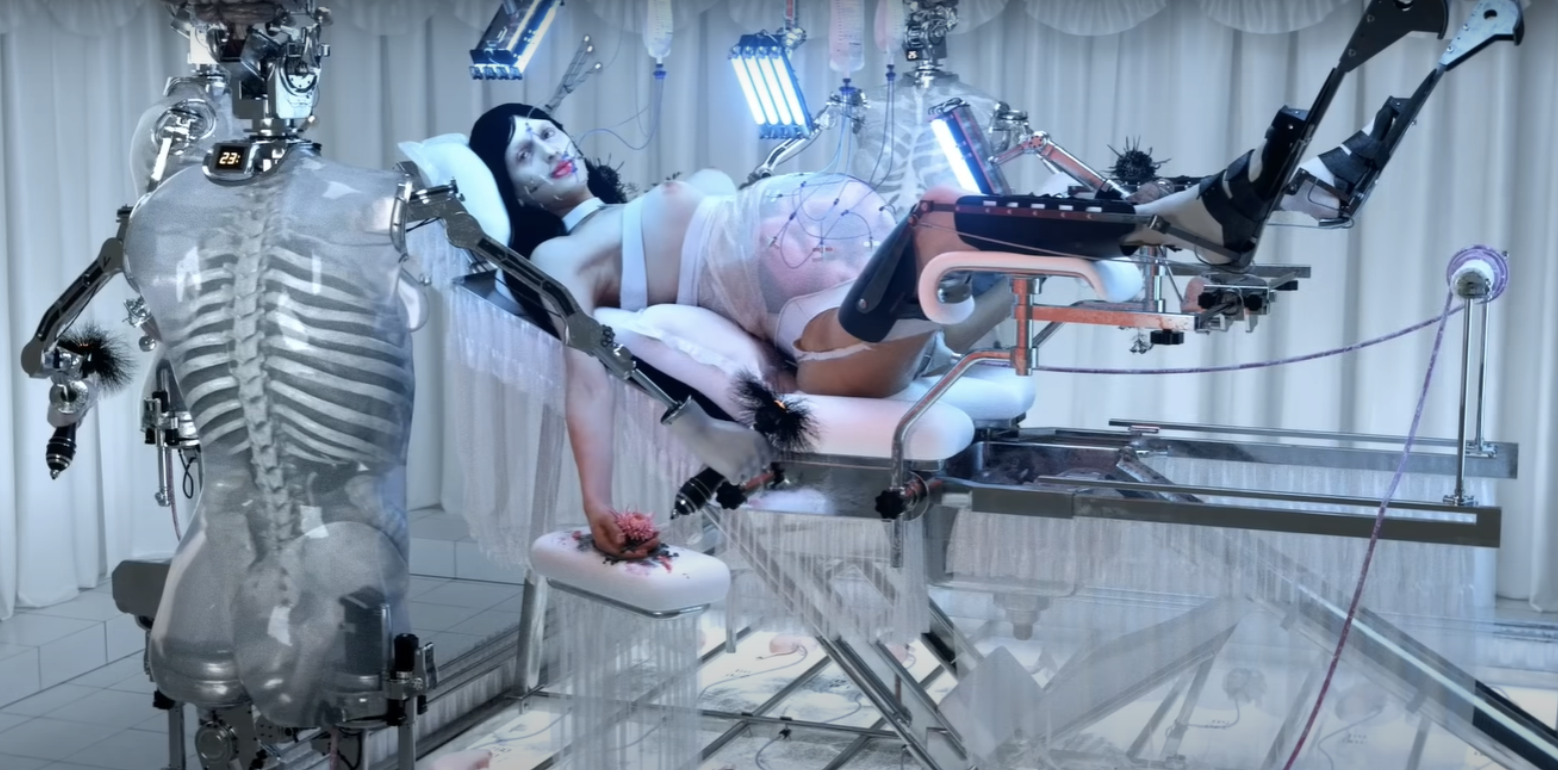 Todo o vídeo musical é uma expressão da identidade como construção social e, em particular, como performance. Arca apresenta-se em várias situações que, em outros contextos, estão associados à mulher: engravida e pousa no centro de uma concha, tal como a pintura O Nascimento de Vénus de Sandro Botticelli (e que tem várias interpretações como a concha ser um símbolo da vagina). É impossível não reparar na associação entre o instante do parto e um cenário de laboratório futurista, submerso numa cama de núpcias, onde um grupo de androides também participam. Desta forma a não binariedade possui uma relação com a frieza das máquinas que estão materializadas nos sons de bateria e na eletrónica. Isto implica igualmente que a construção da mulher, através do papel social de gerar uma criança, é apresentada como complexa e com um toque de grotesco. Basta considerarmos que, se Arca usasse o som melancólico e contemplativo de um piano ou de um violino, faria saltar à vista as rendas e o branco do cenário. (Comparemos com o vídeo NEVER WORN WHITE de Katy Perry onde a mulher grávida é construída de um modo bem diferente, muito mais presa à habitual pureza e idealização que os audiovisuais procuram estabelecer…)