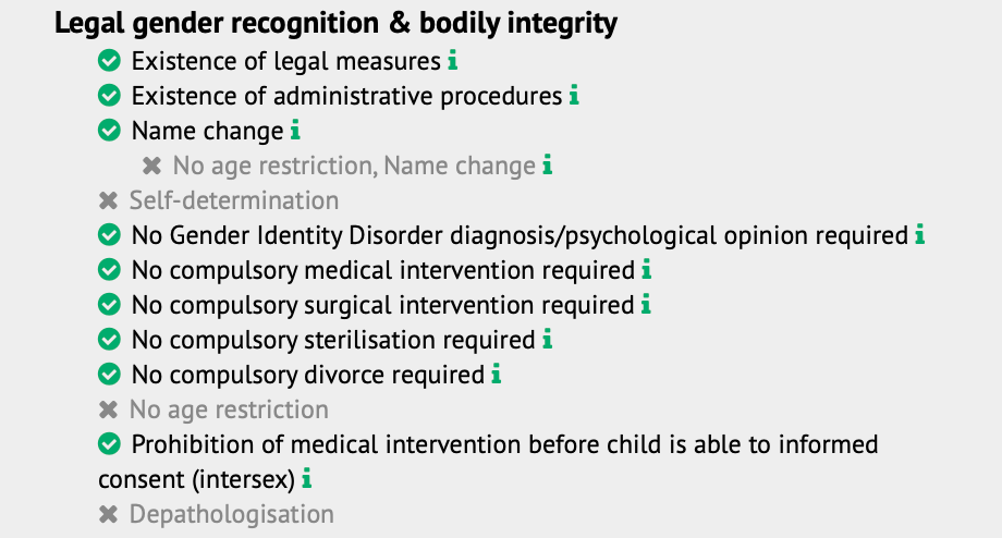 No que diz respeito aos direitos das pessoas trans, houve regressão na Áustria, Croácia, Finlândia, Hungria, Lituânia, Eslováquia e Eslovénia. O relatório mostra um “crescimento significativo da oposição aos direitos trans em toda a Europa“, levando a um impacto amplo e negativo no reconhecimento legal de género.