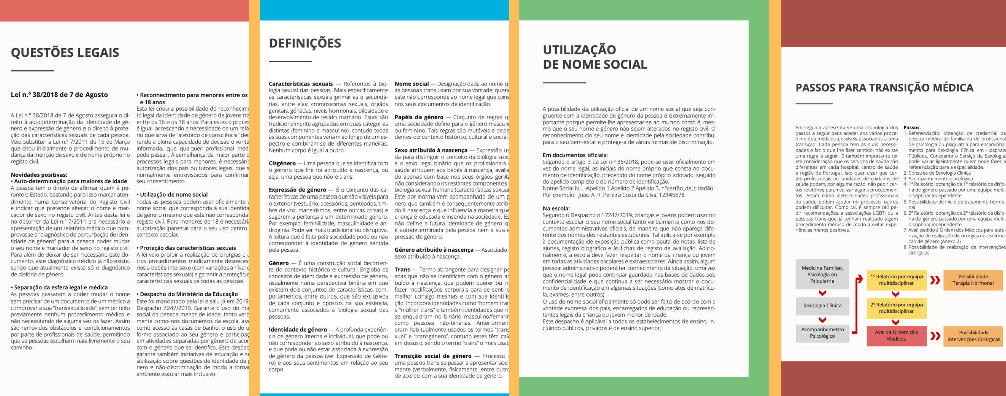 O “Guia sobre Saúde e Leis Trans em Portugal: Recursos e Procedimentos” surge assim como uma compilação de informação que tem como objetivo “simplificar e tornar mais acessível o conteúdo das leis, despachos e políticas em vigor no que toca a questões trans, fornecer informação sobre cuidados e serviços de saúde e facultar recursos para que pessoas trans se possam empoderar e tomar decisões de maneira bem informada.”