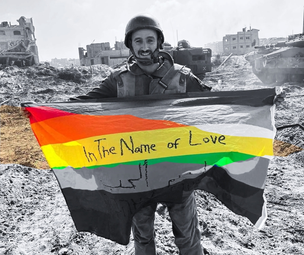 [Na imagem: Soldado israelita com bandeira do Orgulho LGBTQ+ em Gaza, novembro de 2023.]